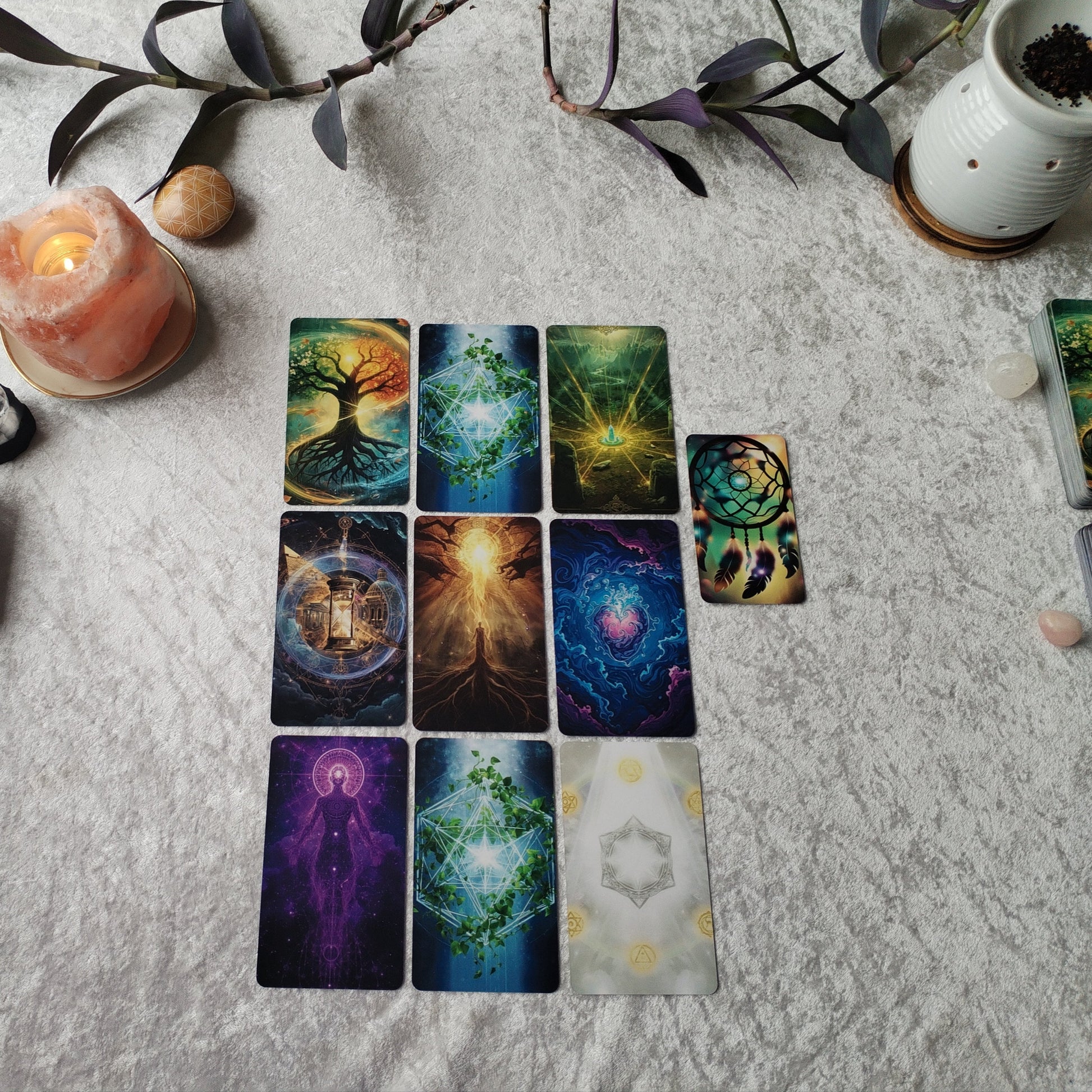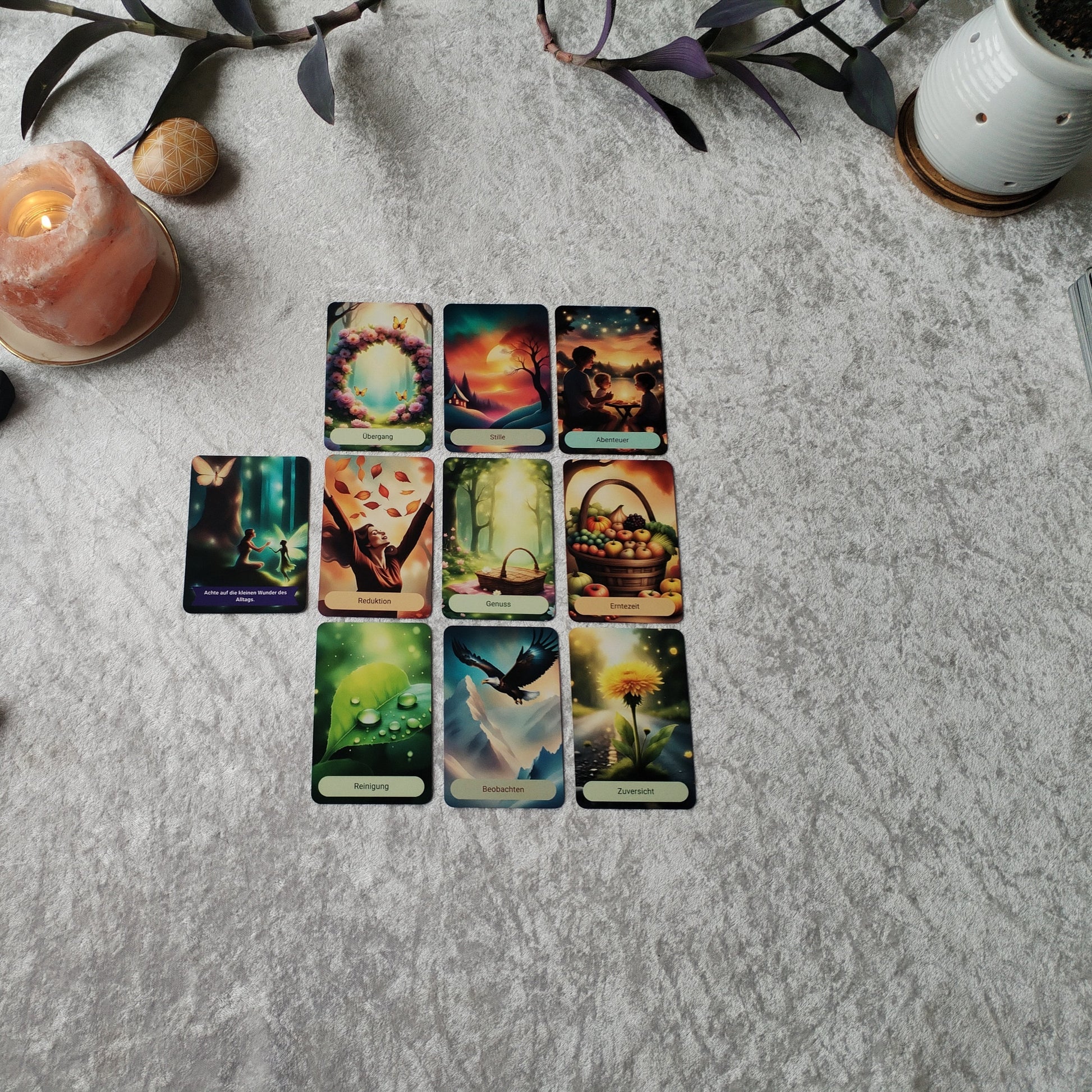 - Die Legung: Ich filme meine Hände und die Karten. Du siehst genau, wie die 9 Karten fallen und wie sie in Verbindung zueinander stehen.